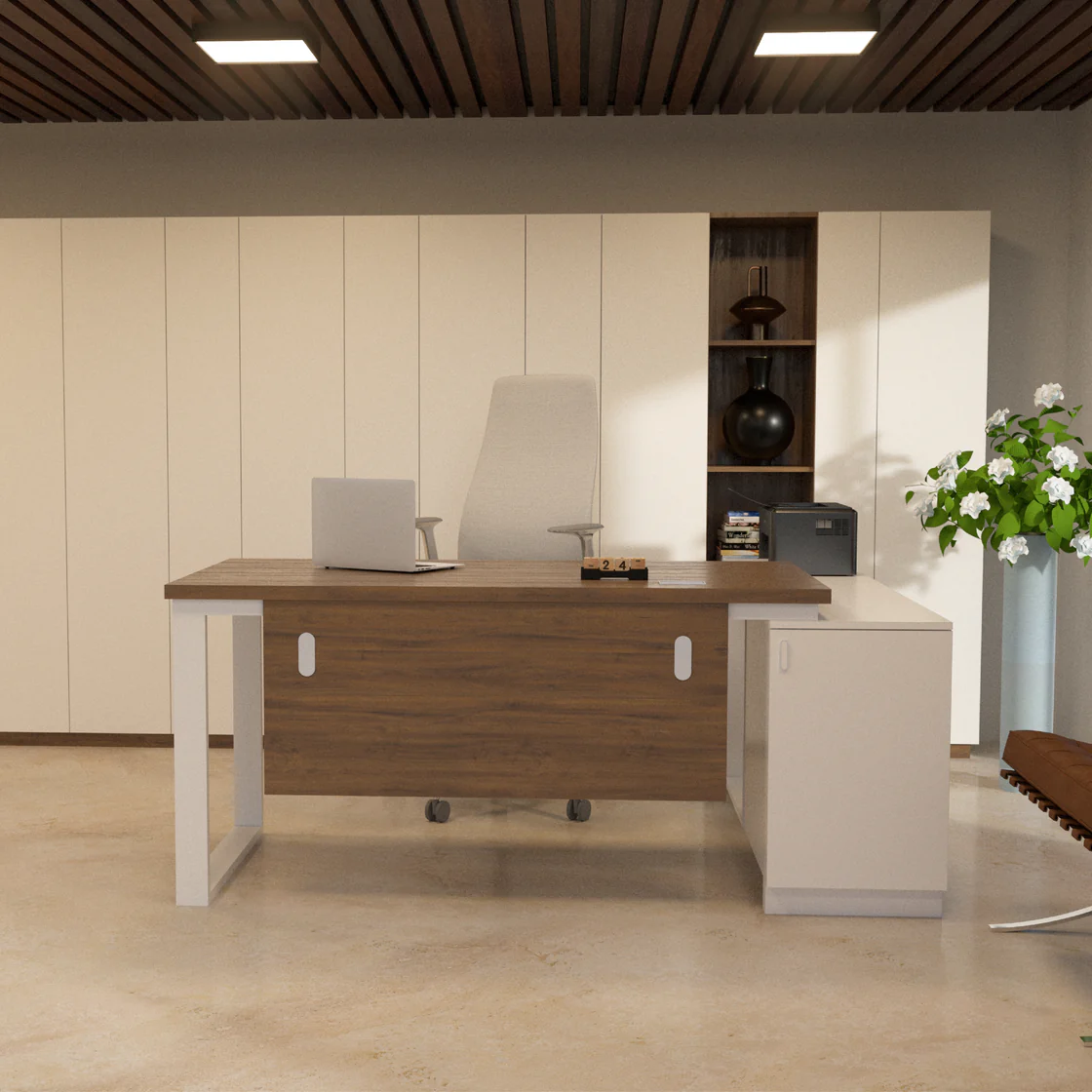 Experience top-tier quality and exceptional design with our stylish wooden L-Desk. Crafted with precision and elegance, this desk offers a perfect blend of functionality and aesthetics. Its easy-to-handle and adjustable features make it ideal for modern office settings. If you’re in search of something unique in design, features, color, and shape, this is the perfect addition to elevate your workspace.