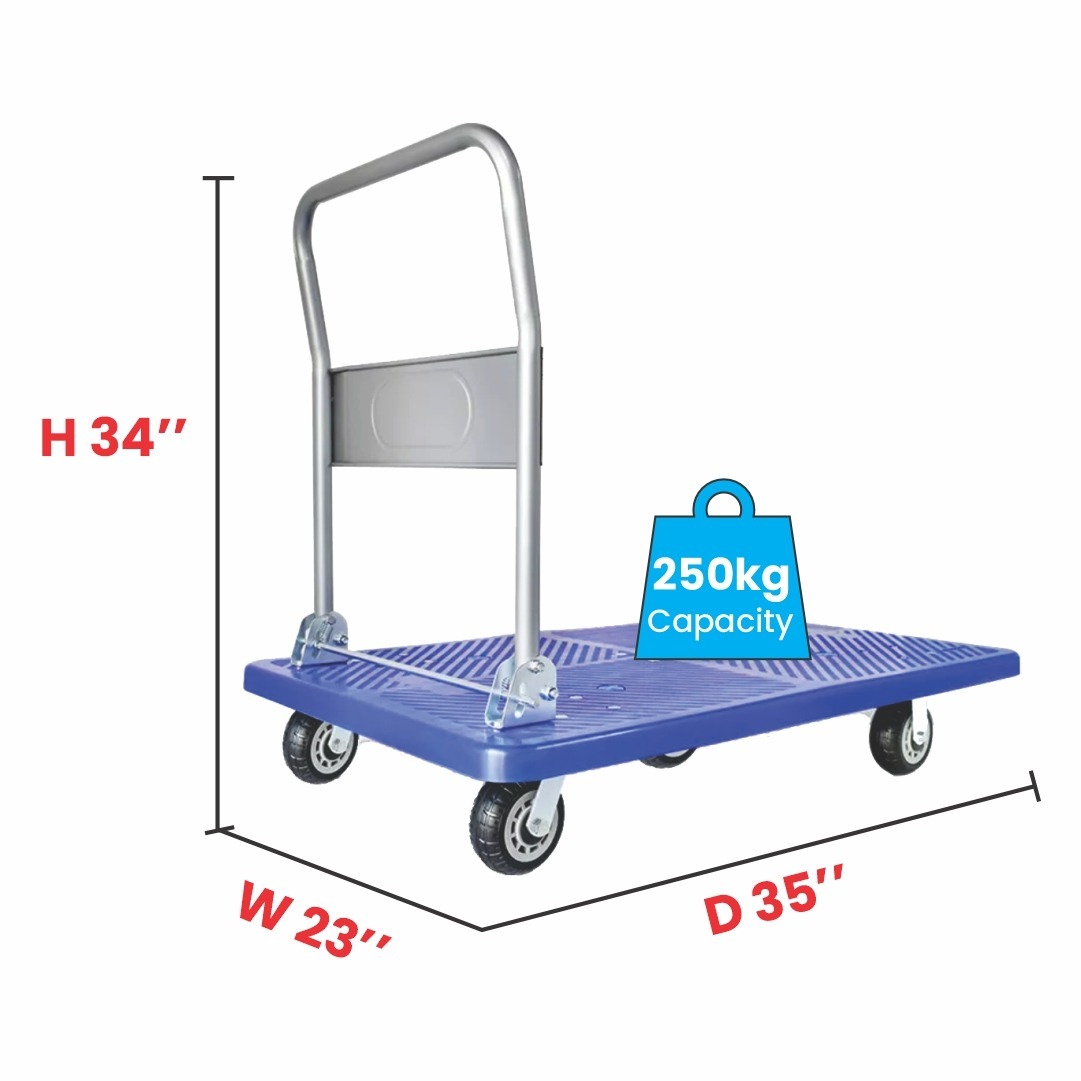 We supply high-performance 250kg Platform Trolleys built with anti-slip surfaces and reinforced frames, ensuring stability even on uneven floors. For more compact spaces, our Single Plastic Platform Truck Trolley 250 Kg is lightweight yet strong, perfect for both indoor and outdoor use.