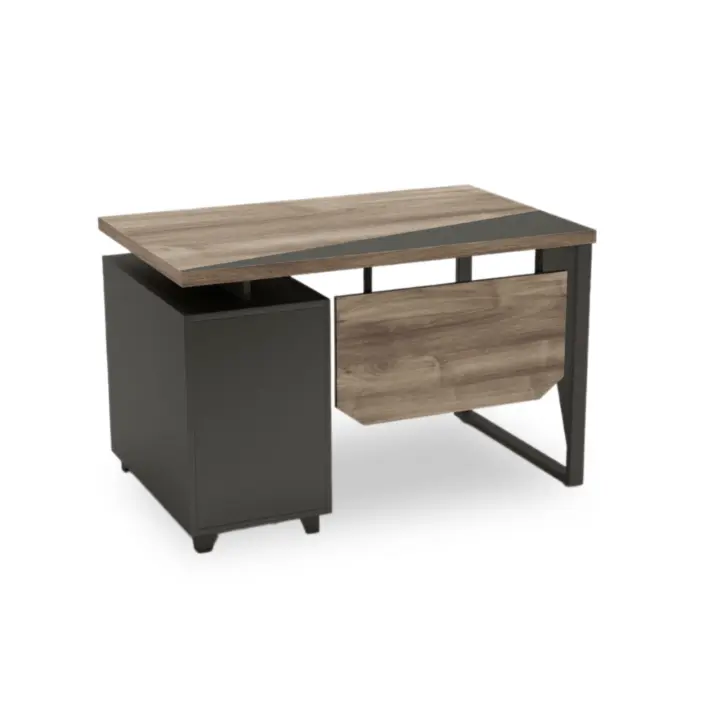 This Office desk is a functional and decorative that fits into any modern interior. The combination of two colored top and a front with a solid grey storage and frame adds a touch of Scandinavian style. The fitted storage encompasses single drawer and cabinet to help you organize your workspace and keep unnecessary things out of sight. Thanks to its universal appearance, the table is suitable for every kind of work setting.