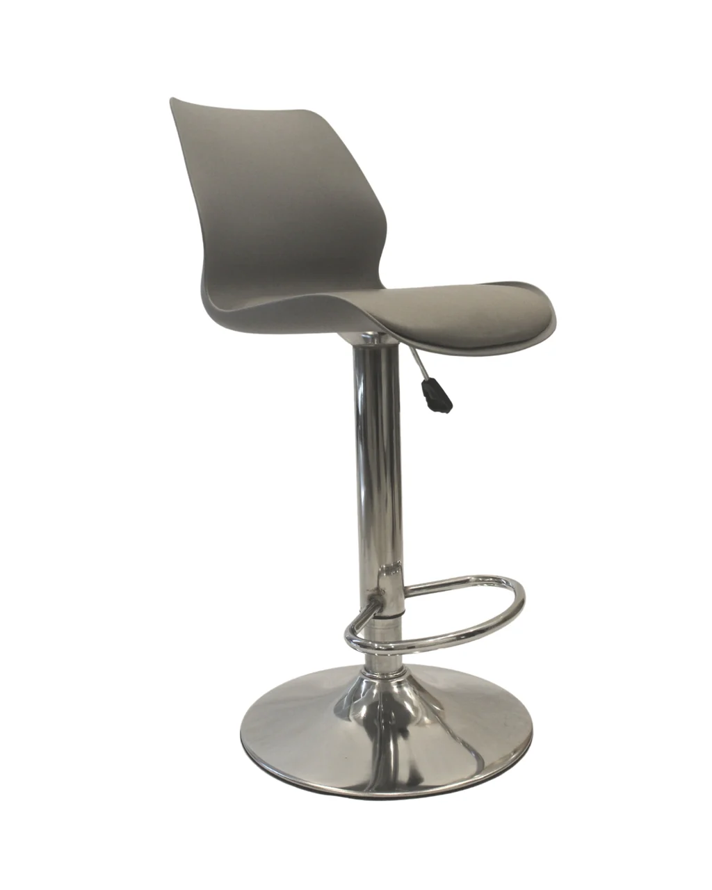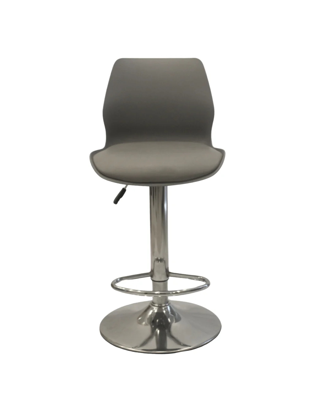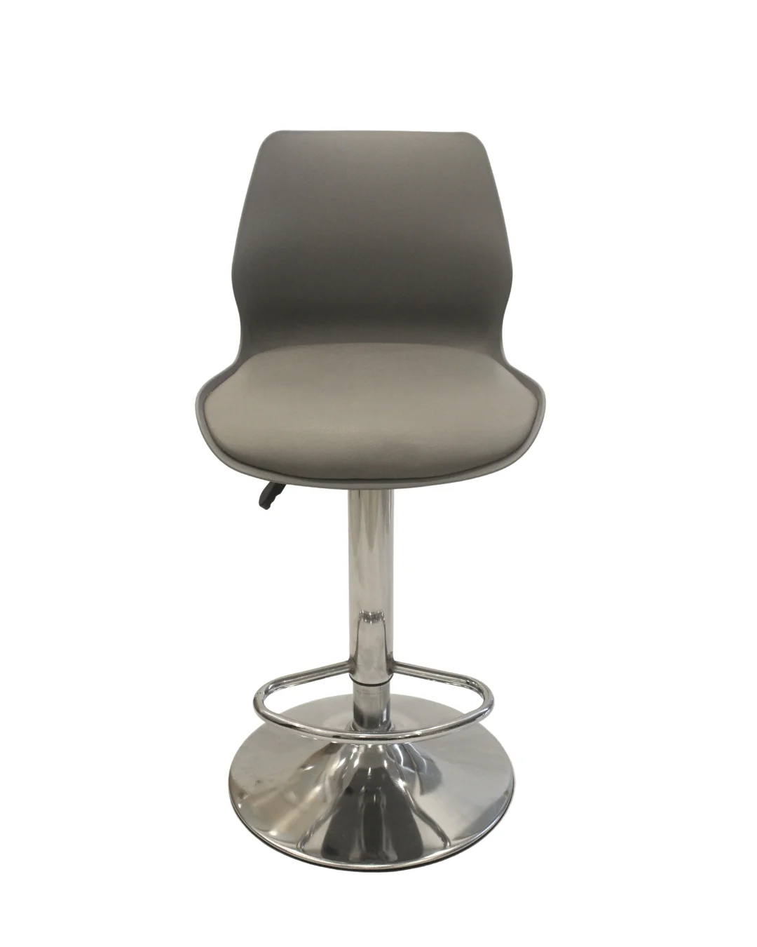 Elevate your seating experience with this sleek and modern adjustable bar stool. Designed with a smooth grey molded seat, it offers excellent back support and a stylish contemporary look suitable for kitchens, home bars, cafés, and restaurants. The chrome-plated pedestal base adds durability and shine, while the integrated footrest provides added comfort during extended use.